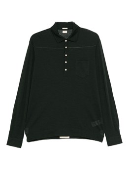 Black polo shirt with classic collar, buttons and cuffs and ribbed waist. product code: L1MFW25266730D001