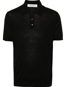 Black silk polo shirt with short sleeves and collar with logo detail. product code: GXZ02TJBSOIN0000
