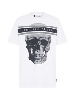 White T-shirt with short sleeves and contrasting logo print. product code: 10139441A167041W000