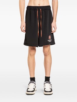 Blue bermuda shorts with elastic waistband and drawstring, tone-on-tone embossed monogram print detail. Side and back pockets. product code: MSP26JTR00305APPLIQUEMONOGRAM